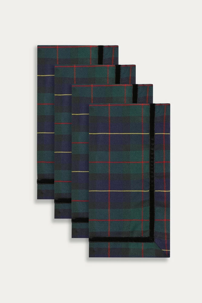 These classic and timeless Black Watch tartan napkins will be a holiday favorite for years to come. Trimmed with black velvet for just the right touch of elegance. These are easy care, no iron and no fuss. Â