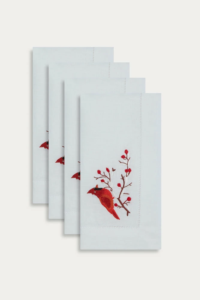 TRISH SCULLY CARDINAL EMBROIDERED LINEN NAPKIN, SET OF 4