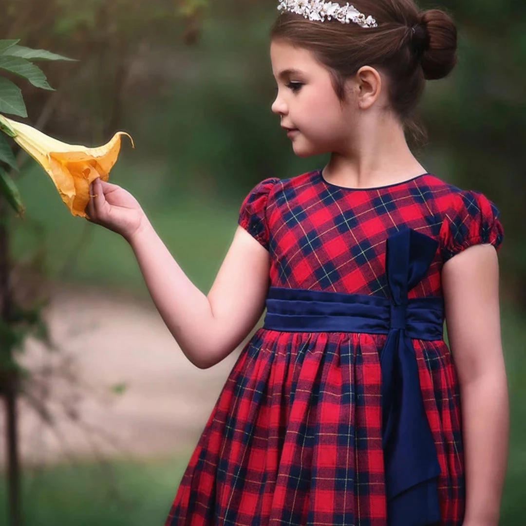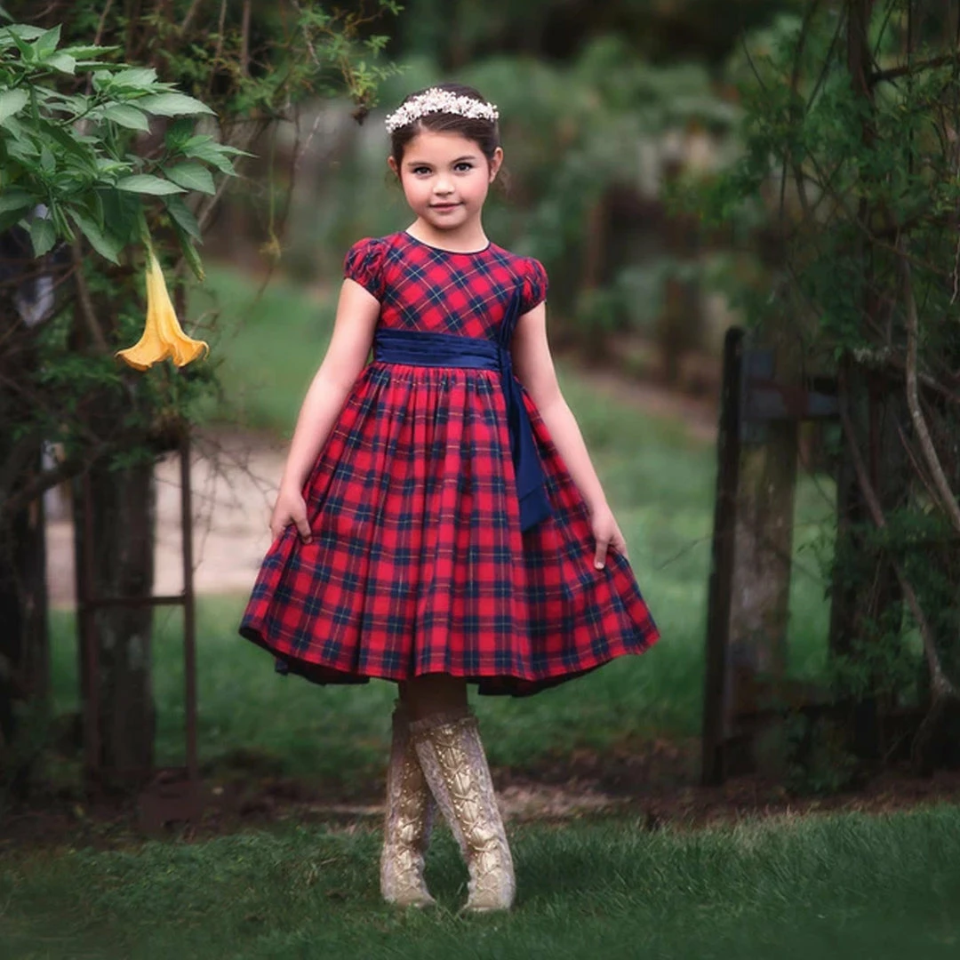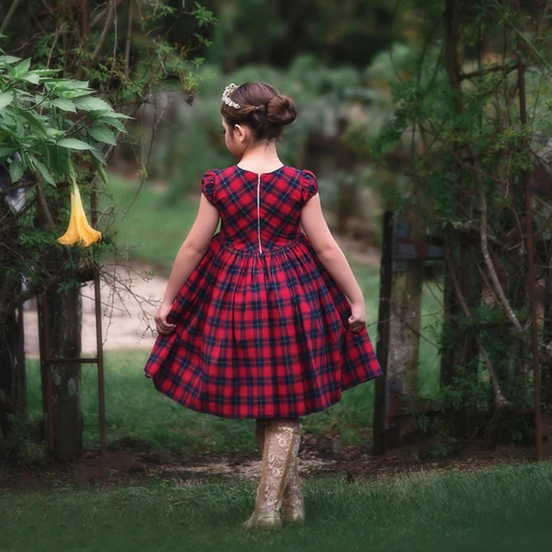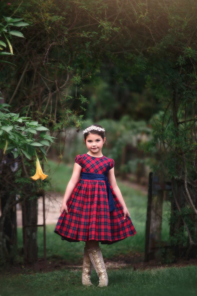 Holiday traditions meet a twist of whimsy in this darling red plaid dress. This oh so twirly soft cotton dress is graced with details from head to toe. The bias cut bodice is graced with piping at the neckline, while the pleated waistline is perfectly finished with a vertical bow. This dress is fully lined with soft cotton and zips in back. Machine wash, hang dry.