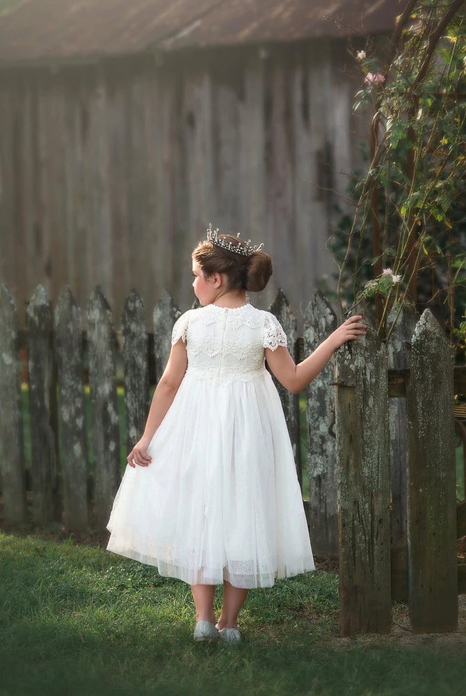 This dress is stunning! It’s perfectly detailed and simply elegant. The bodice is layered with a soft lace trim that extends to the back of the dress and finished off with a darling cap sleeve. The skirt has just the right amount of poof by having a built in pettiskirt and is fully lined with soft cotton so never scratchy. All of our dresses are tactile friendly for the most sensitive of children. This is a timeless, elegant dress for the most discerning of events. 100% cotton self, 100% soft cotton lining. Fully lined, back zip. Machine wash, hang dry.