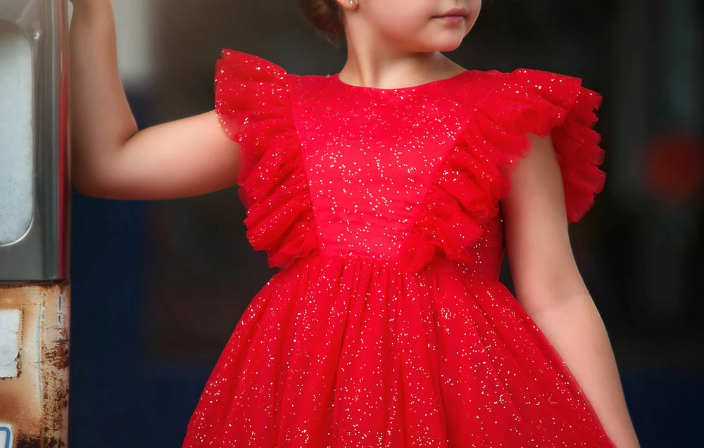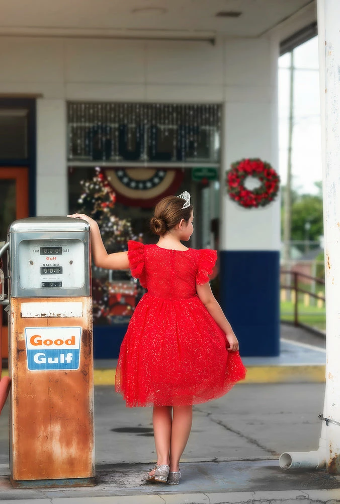 TRISH SCULLY GIRLS MILLY DRESS SPARKLE CRIMSON