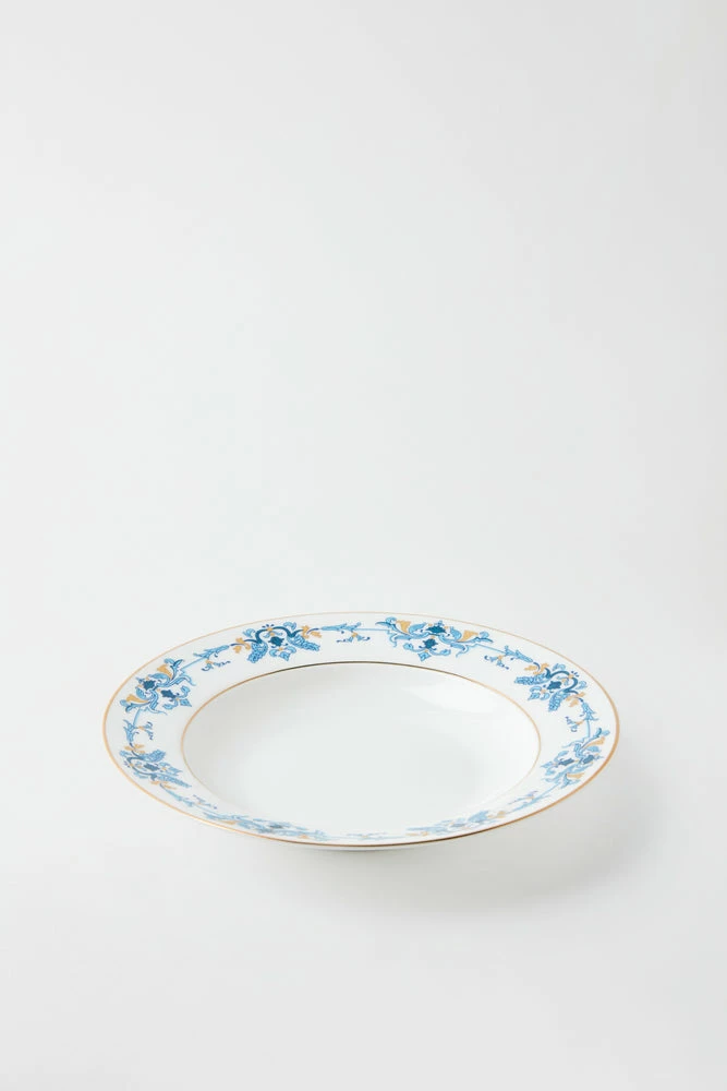 Hand decorated with a deep blue and gold Louis XIV motif embellished with a 22k gold rim, this bowl is pure elegance.Â