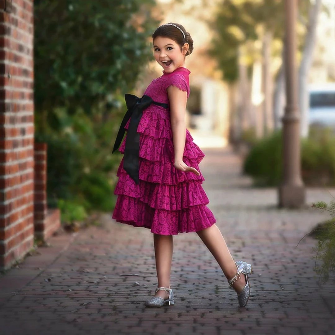 One of our most stunning gowns to date, this ruffled masterpiece will not disappoint! Our signature soft, French inspired lace, is perfectly layered and finished off with a removable black sash. Pair this with our fabulous black fan and gold Gramercy boots for the perfect head turning outfit. This gown is fully lined with soft cotton and back zips. Machine wash, hang dry.