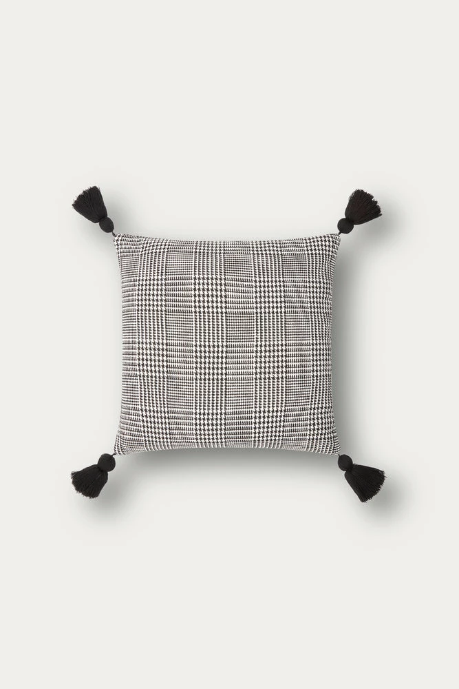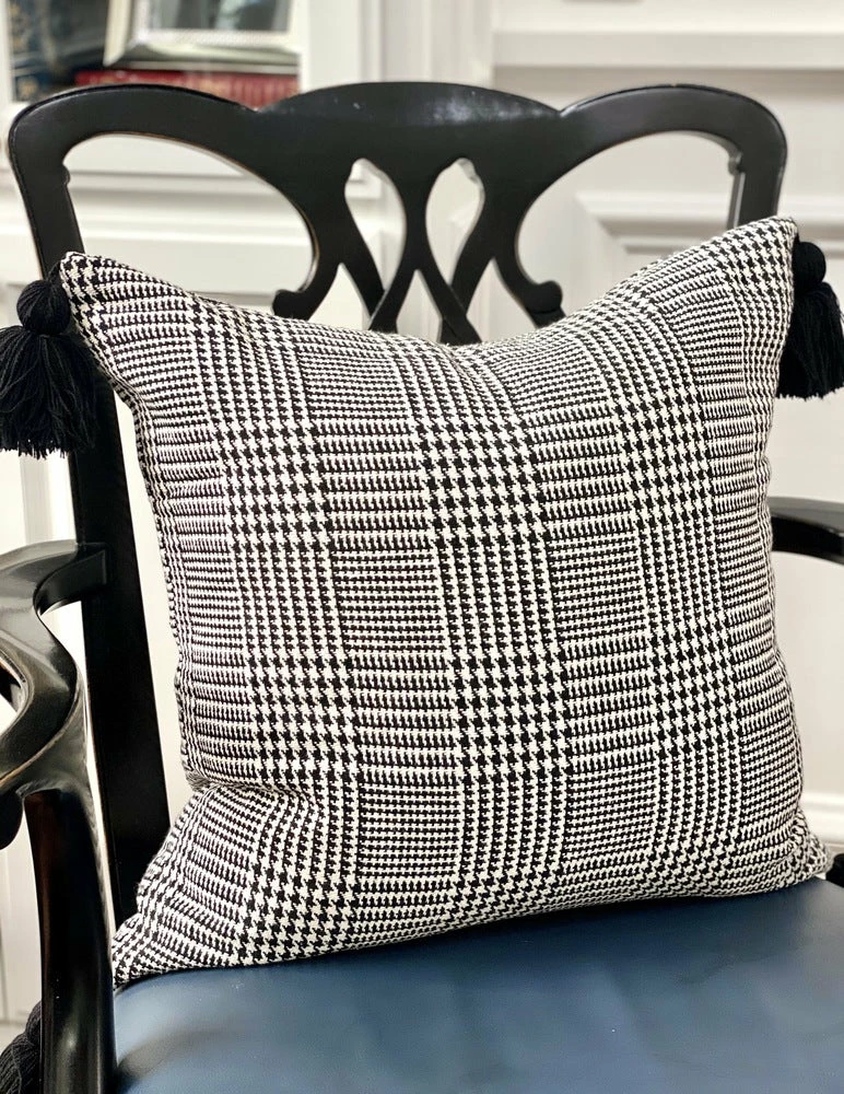 This classic and timeless Glen Plaid pillow case comes complete with black tassels for an extra pop of glam! Invisible zipper opening. Down insert sold separately.Â