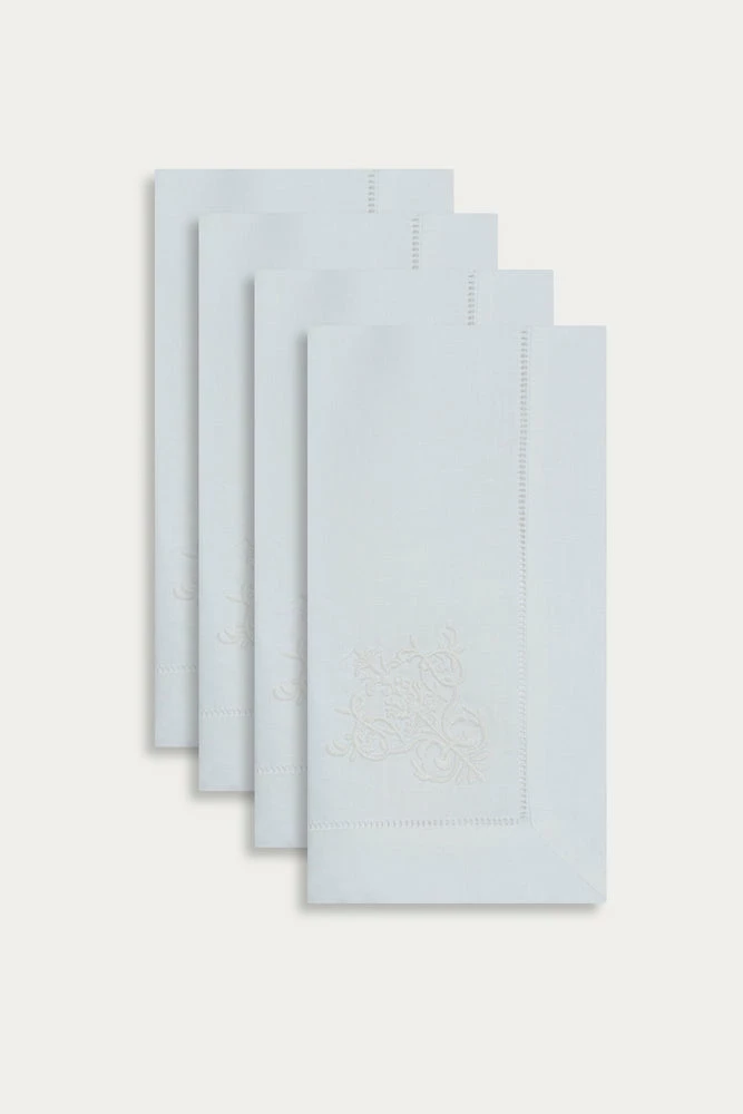 TRISH SCULLY HOME ITALIAN LINEN FLORAL EMBROIDERED NAPKINS, SET OF 4