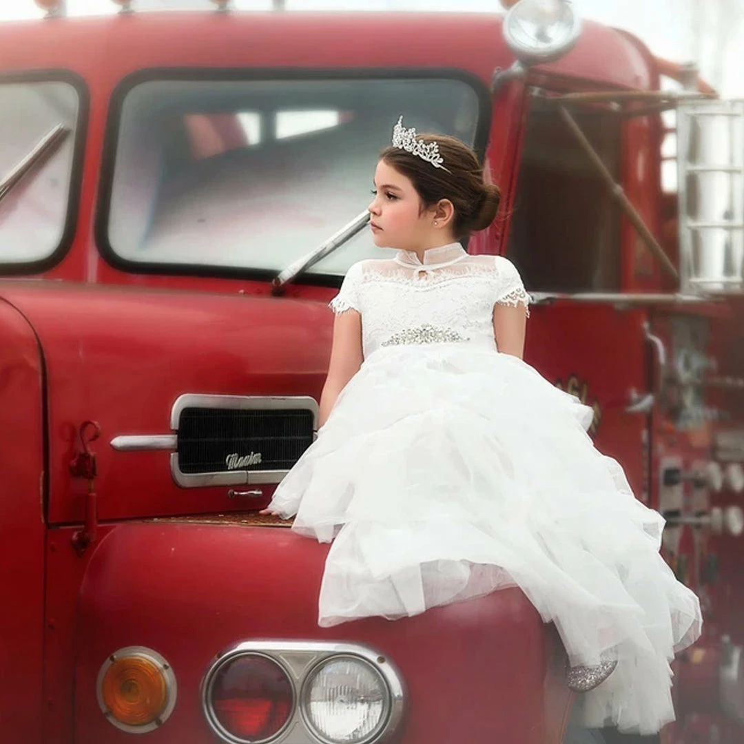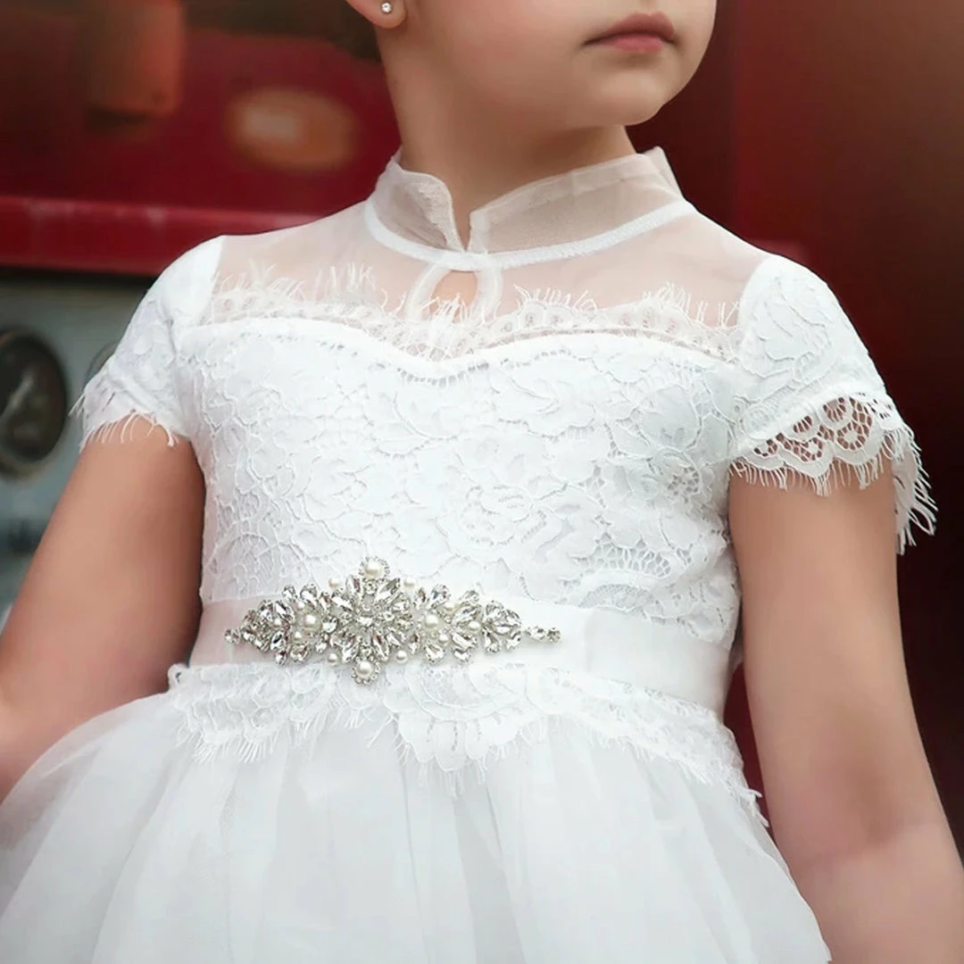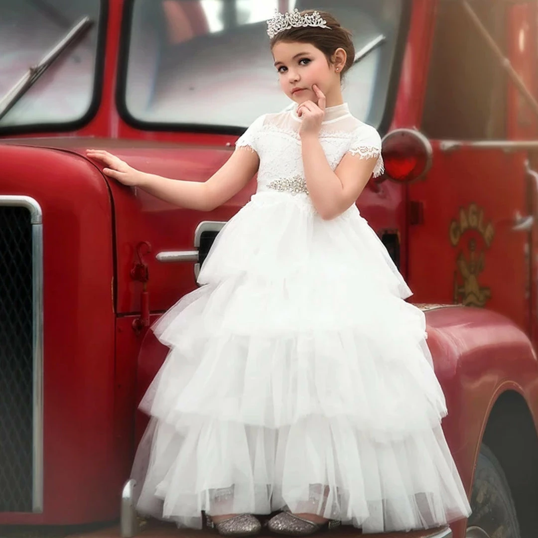 This dress is amazing. It has ruffles, it has lace, it has sparkle and drama! The french lace bodice covers a sweetheart neckline with our signature soft fabrications, never scratchy. The skirt is comprised of layer and layers of bouncy and twirly tulling that extend down to the ground. The removable sparkle belt self ties in back for just the right fit. This is a showstopper gown and will be a favorite for generations to come. 100% poly self, 100% soft cotton lining. Machine wash, hang dry. Fully lined, back zip.Â
