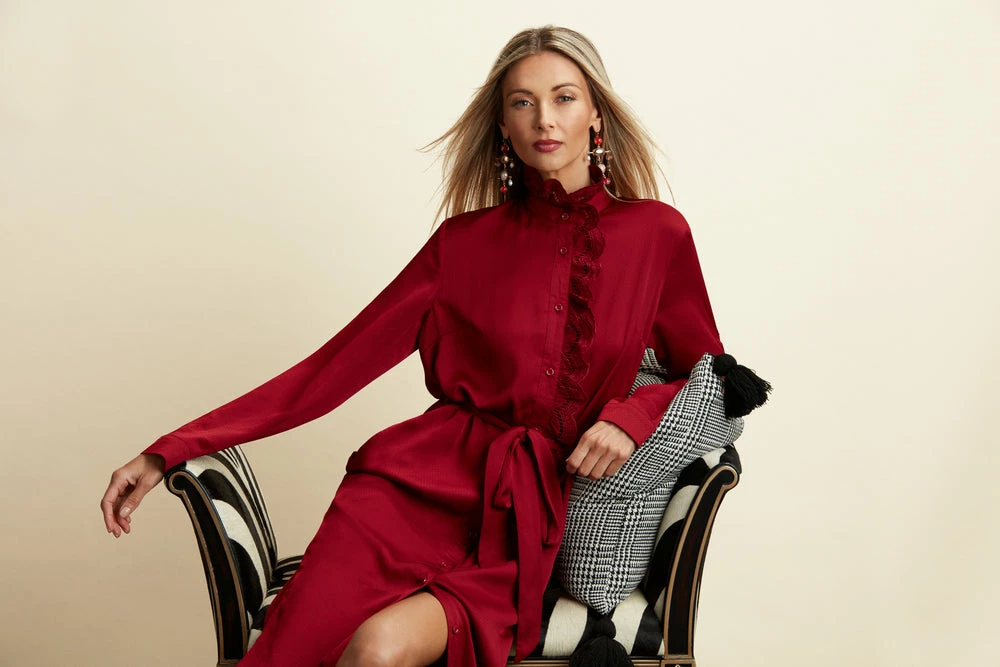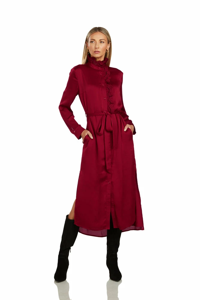 This button front maxi dress is a showstopper! The collar comes complete with soft vintage lace embroidery, beautifully framing the face.Â
