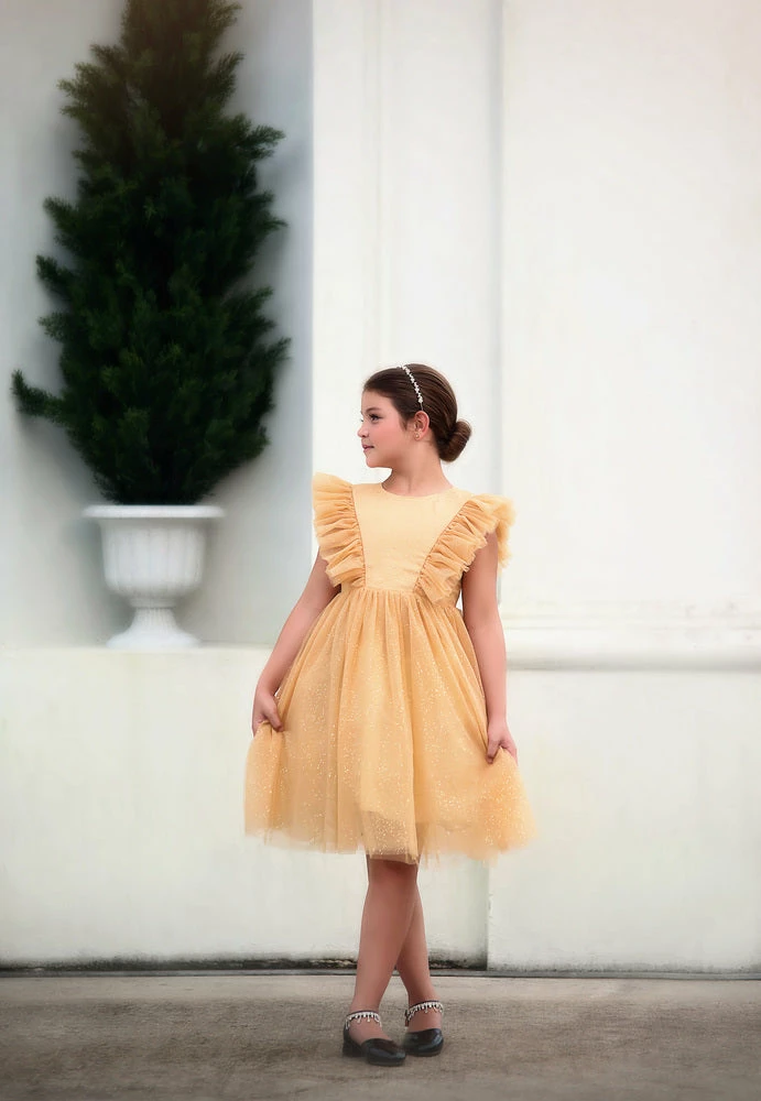 Once of our most sought after dresses of the season, our Milly dress will not disappoint! Voluminous tuling and satin galore, this dress has all the bounce and twirl a girl could want. The sheer back adds just the right touch of formality. Soft fabrications, fully lined and never itchy, this dress will have all eyes on her. Fully lined, back zip. Machine wash, hang dry.