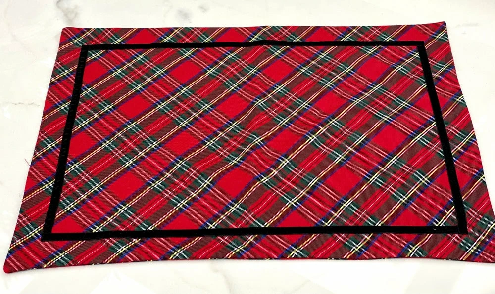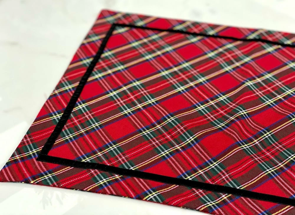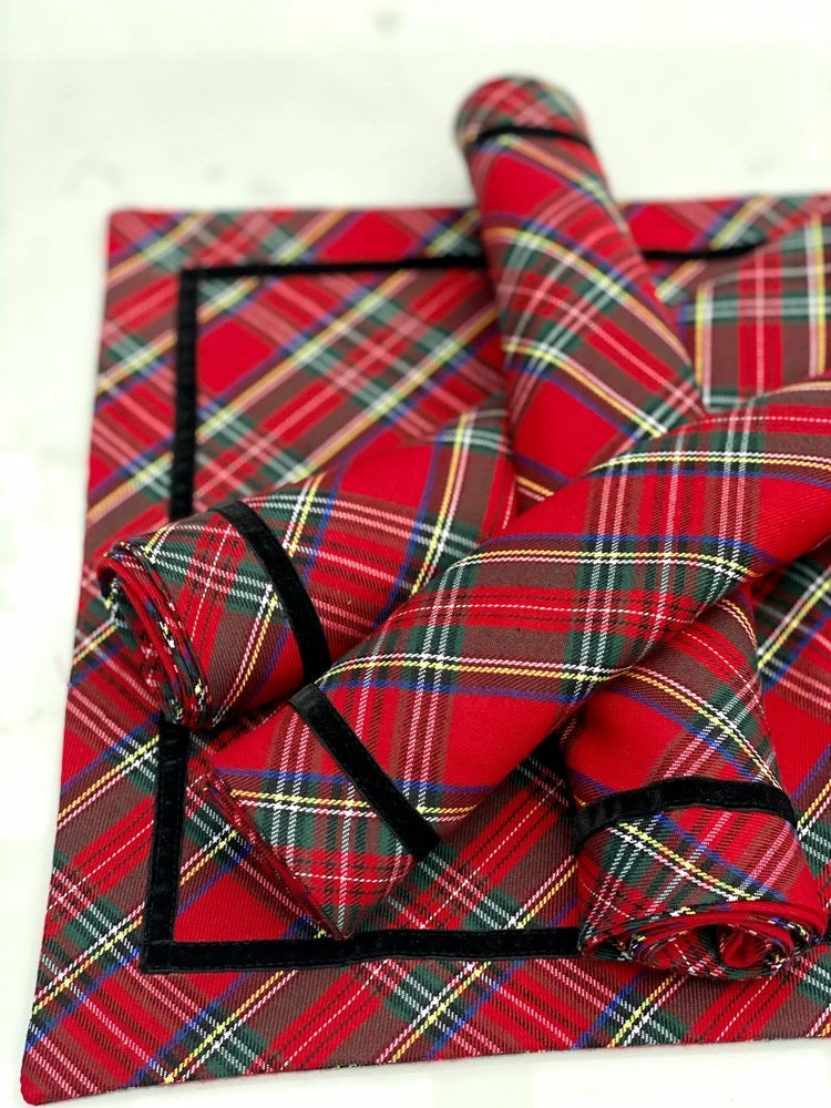 These classic and timeless Royal Stewart tartan napkins will be a holiday favorite for years to come. Trimmed with black velvet for just the right touch of elegance. These are easy care, no iron and no fuss. Â