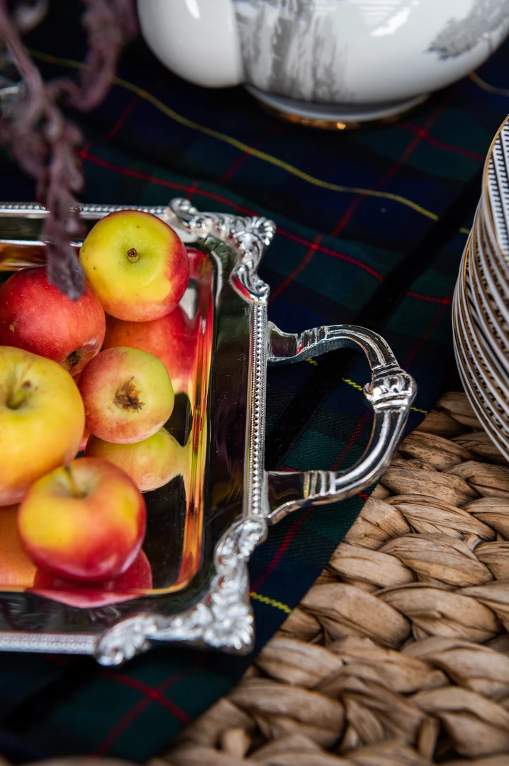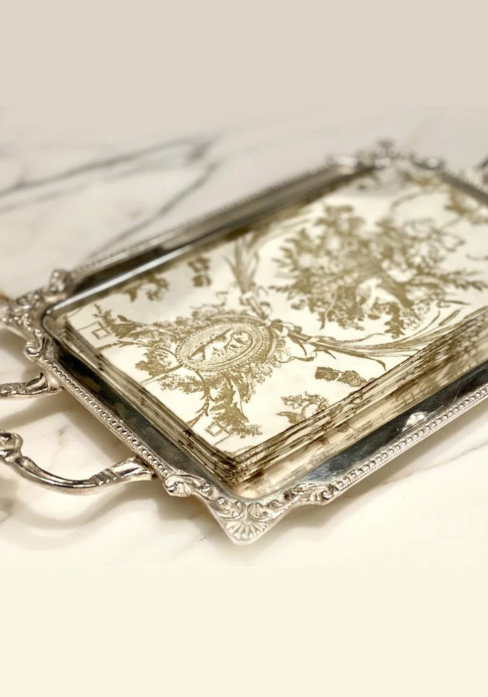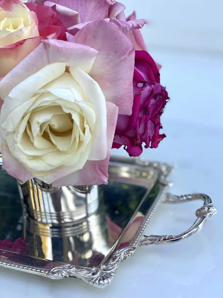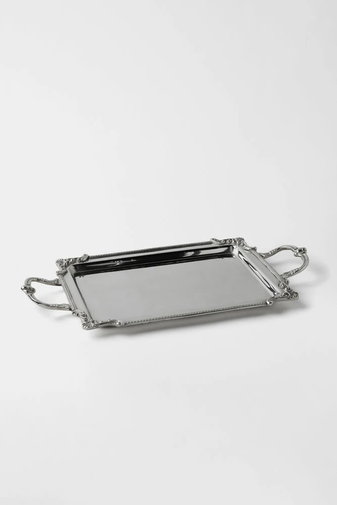 Oh so handsome and versatile, this tray is perfect for a powder bath vanity and will fit your favorite guest towels. Add one of our julep cups filled with flowers, your favorite hand soap and voila a presentation fit for royalty.  Multiple microns of silver plating make for an incredibly durable and valuable piece, you won’t believe you paid so little for such luxury. 13″ long x 7″ wide