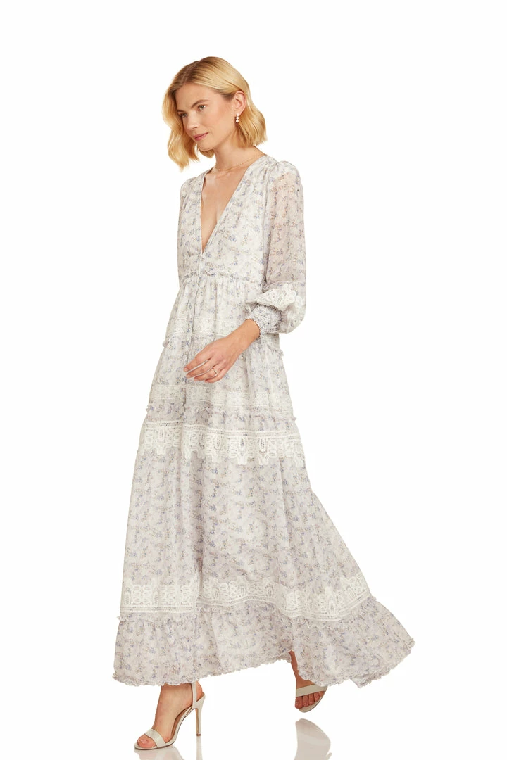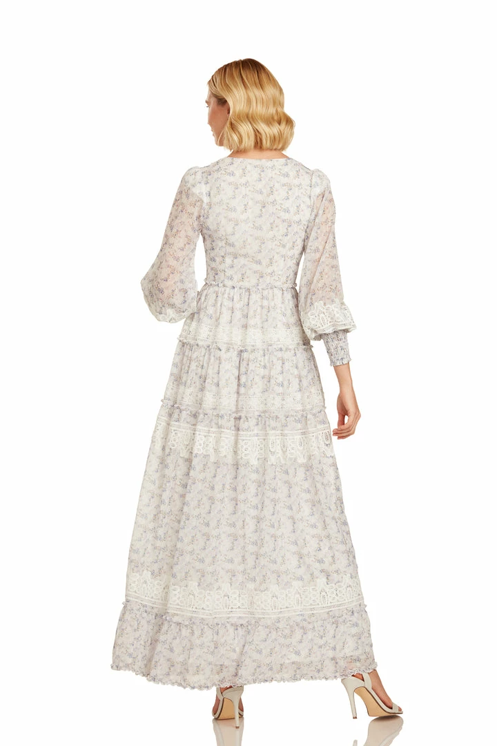 A jaw-dropping choice for Spring, this one is stunning from all angles. A delicate floral fabric meets sweet embroidery and trims, subtle ruffles, and finished with a cuffed puff sleeve. A dramatic and feminine deep-v neck completes the look! A perfect choice for beach, dinner, party, photoshoot… you name it. It’s that versatile. Gorgeous coming and going!Â