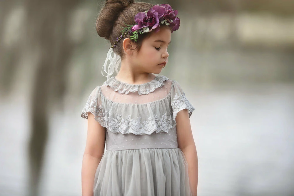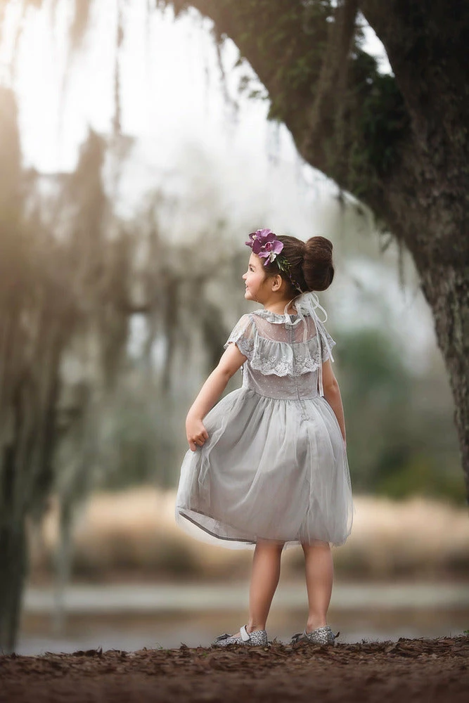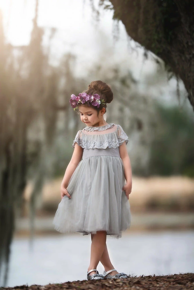 Soft and perfectly elegant for her most special of occasions, the Giovanna dress will have all heads turning. Â Layers upon layers of tuling grace the skirt of this oh so twirly dress, while a soft flounce of soft lace graces the neckline. Â This dress is soft and perfectly lined with pure cotton. Â Back zip. Â Machine wash, hang dry. 100% poly self, 100% cotton lining.Â