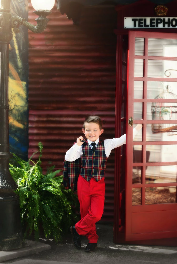 He will be the most dapper of all dudes wearing this classic Stewart tartan suit.  The quality is amazing on these, and for 3 pieces it’s a steal of a deal. Jacket, pant and vest will be coming to you, packaged beautifully on a hanger and in a keepsake suit bag. This luxurious Stewart tartan jacket is fully lined and finished just as beautifully on the inside as the out. This jacket has 2 hidden pockets to keep his special keepsakes. Vest has an adjustable back buckle and red corduroy pant comes with adjustable elastic tabs inside, for just the right fit. 70% poly 30% cotton, 100% poly lining. Dry clean only. Model is wearing a size 5 and is 5 years old. These run true to size.Â