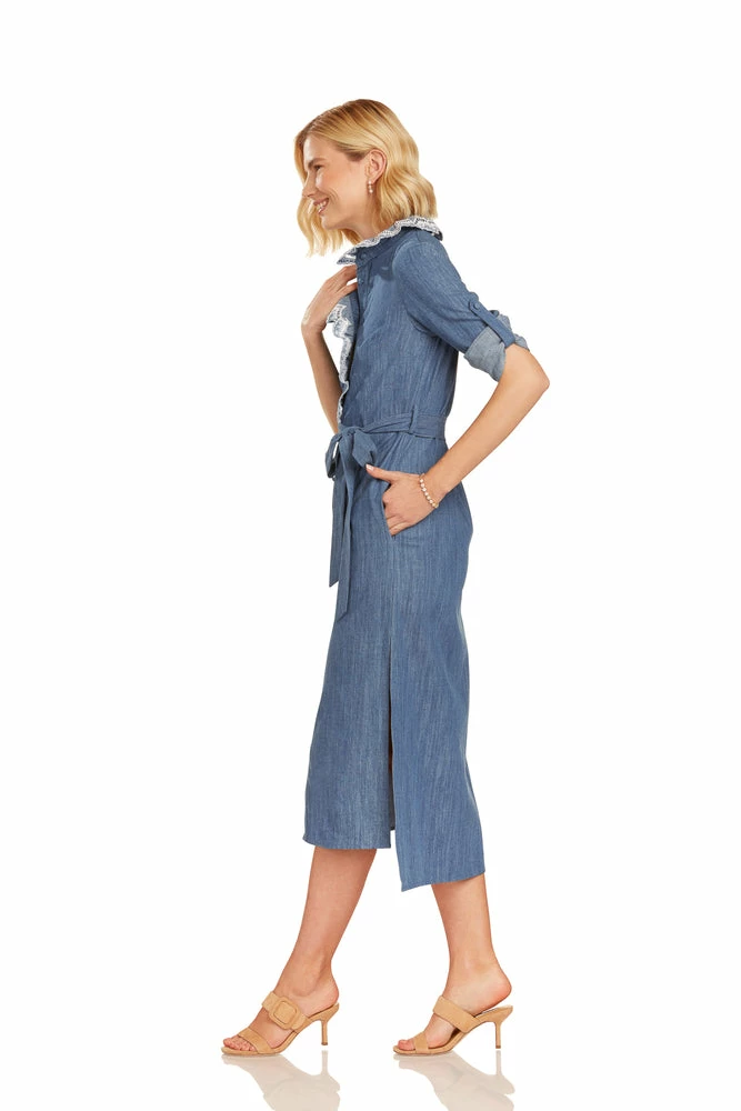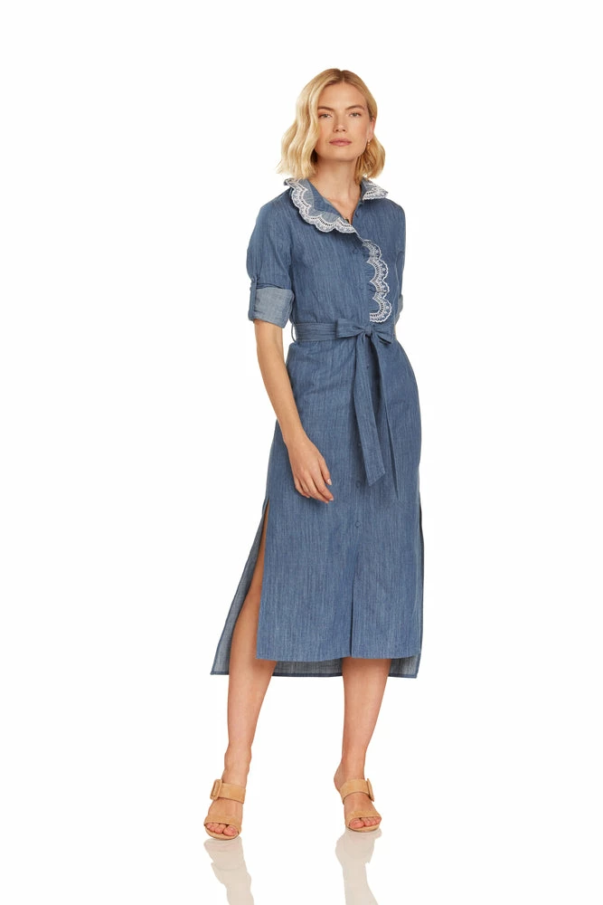This button front maxi dress is a showstopper! The collar comes complete with soft vintage lace embroidery, beautifully framing the face.Â